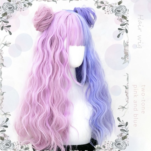 【在庫限り】 ウィッグ ピンク&ブルー ツインお団子 ヘア ロング ツートン フル