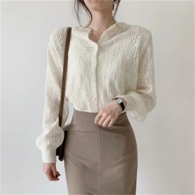 透かし彫り セーター カーディガン 肌にやさしい ニットトップス
