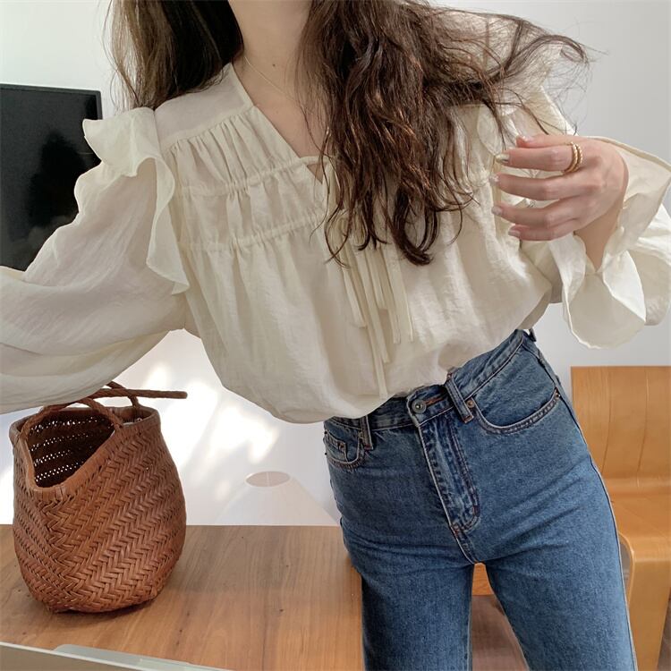 フリルブラウスですが、そこまでガーリー感もなく楽しめます。