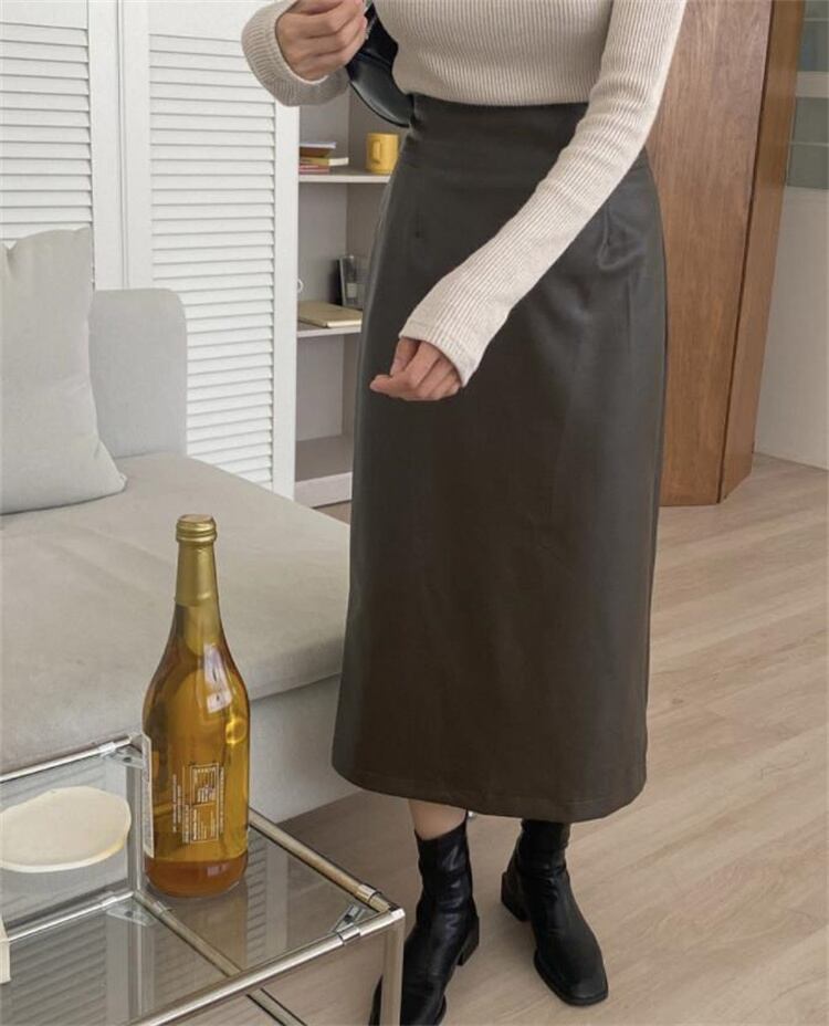 レトロ ハイウエスト ロングスカート PUレザー Aライン レザースカート スリム