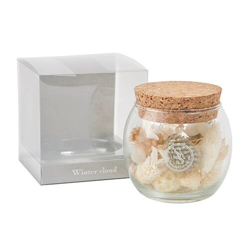 丸みを帯びたフォルムのガラスポットに、"季節の風景"をテーマにしたインテリア性の高いポプリ