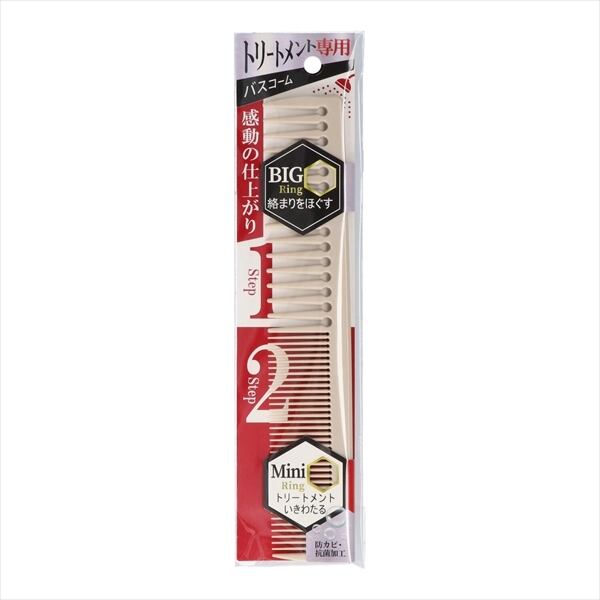 商品説明:トリートメントを毛先までいきわたらせるのに便利な粗目と細目のツーウェイコーム。歯の根元がリング状になっており髪を傷めず絡まりをほぐし、毛先までコーミングができます。