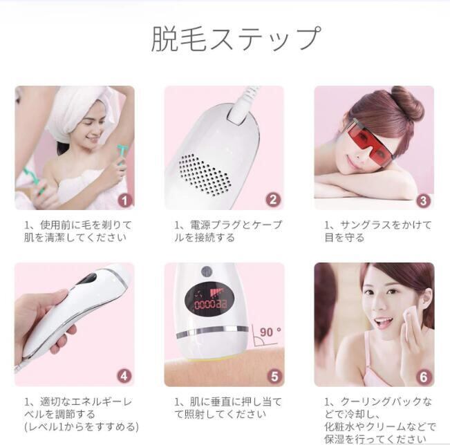 ●肌色センサーについて:誤照射を防ぐために、肌色識別システムを搭載し、照射面を肌に垂直密着しないと照射できません。照射面の汚れは、こまめにふき取ってください。※熱がこもり故障の原因となります。