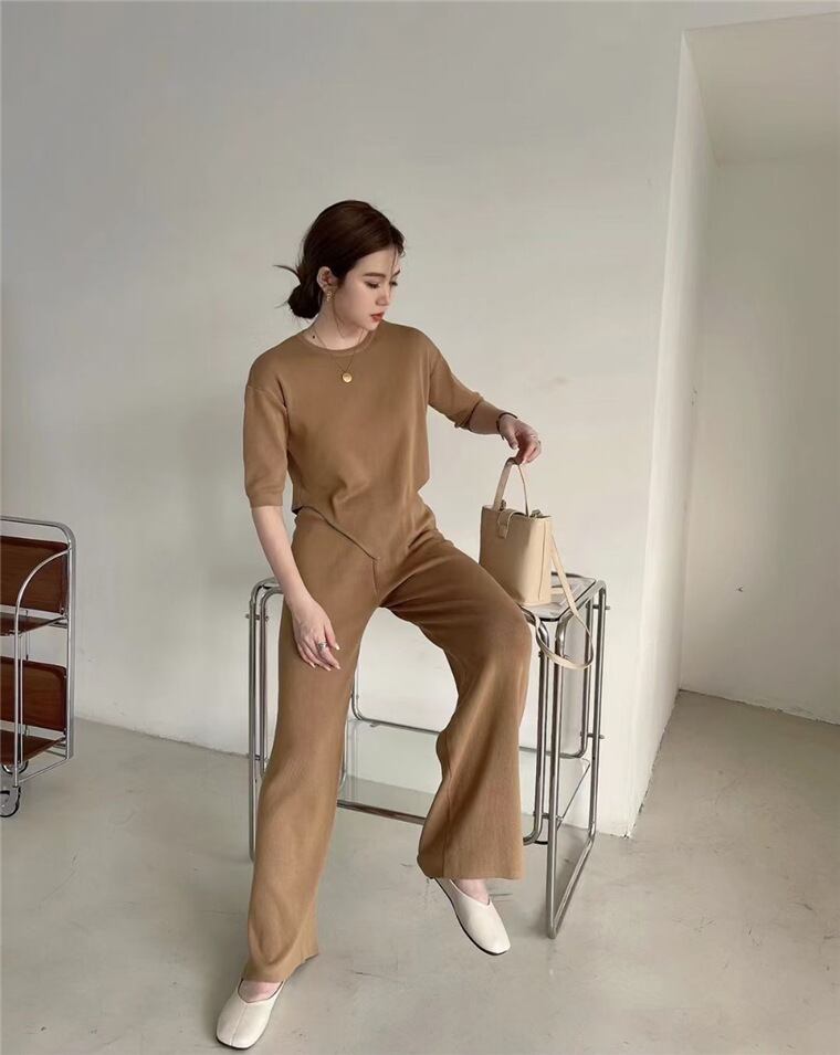 2022春夏新作 2点セットアップ 半袖 リボン付き 着回し カジュアル トップス