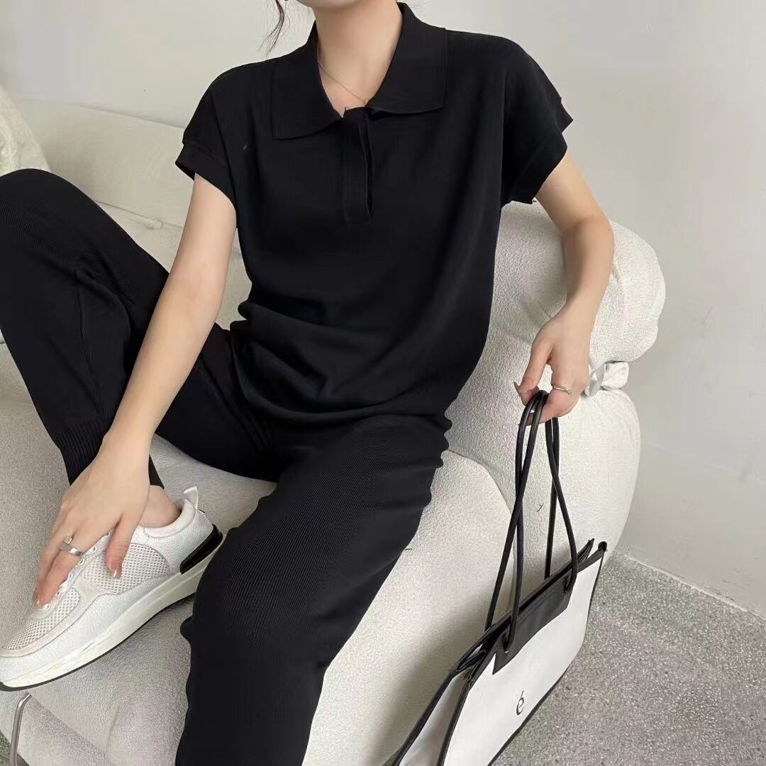 2022春夏新作 2点セットアップ 半袖 リボン付き 着回し カジュアル トップス ワイドパンツ