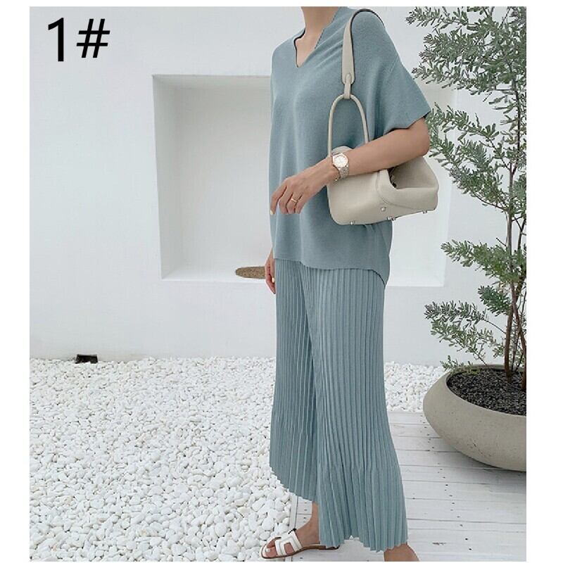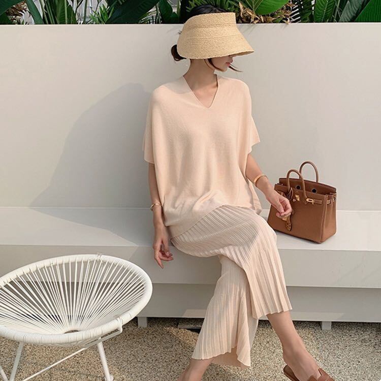 2022春夏新作 韓国風 カットソー ワイドパンツ 2点セットアップ レディース カジュアル