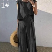 2022春夏新作 ノースリーブ トップス ワイドパンツ 2点セットアップ 韓国風 レディース