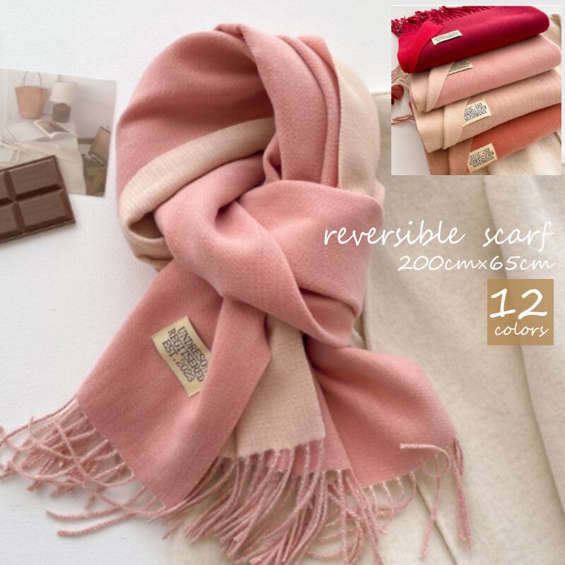 レディース マフラー ストール 秋冬 大判 リバーシブル ソフト 柔らかい あったか カシミアタッチ