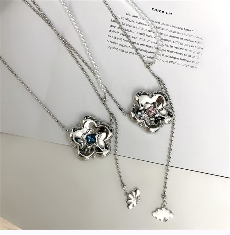 ファッション祭り特価中 ドリル ネックレス 個性 気質 花 真珠 長いネックレス 韓国 デザイン感