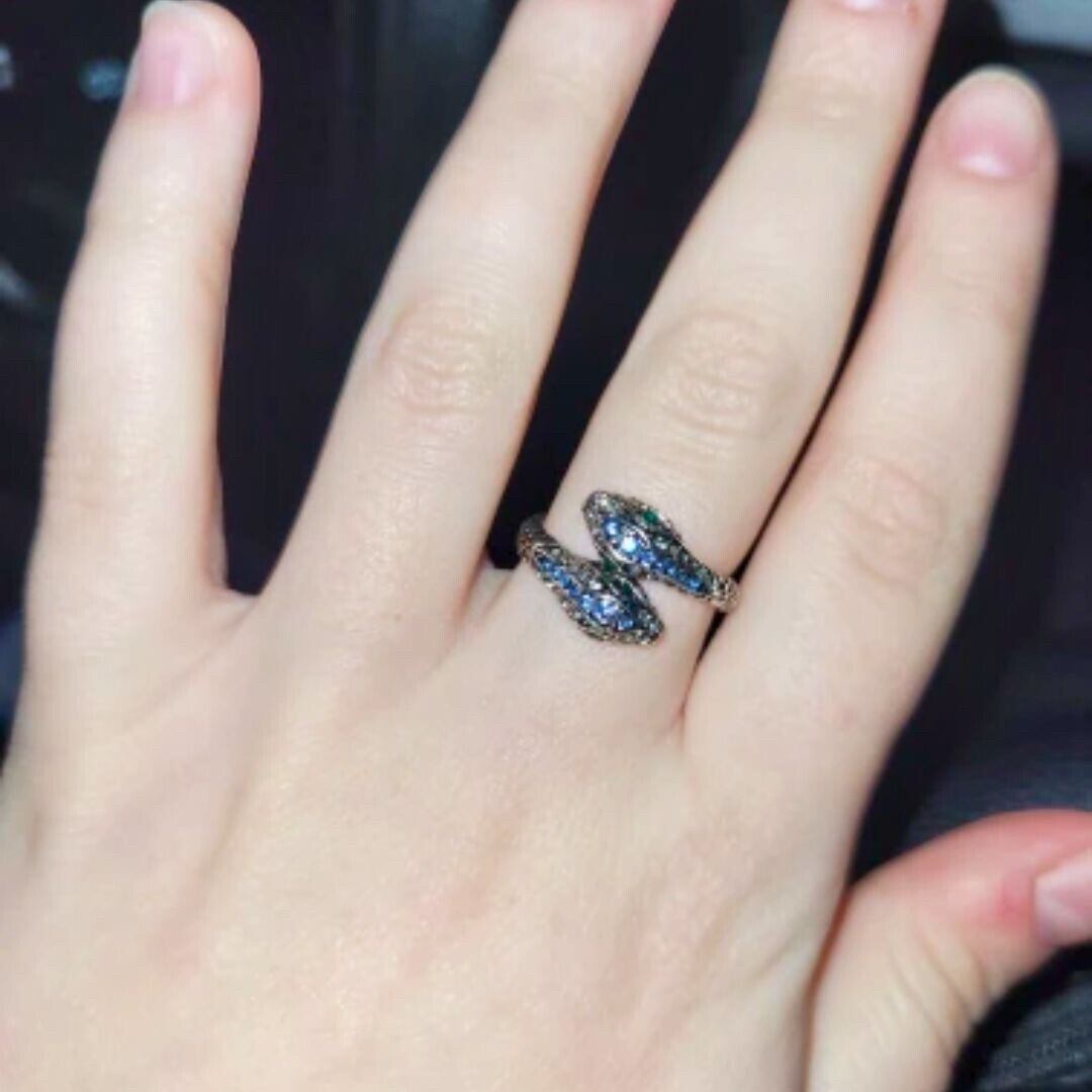 リング 二頭を持つヘビ ブルービーズ ガラスカット スネーク 蛇 snake 指輪 韓国ファッション