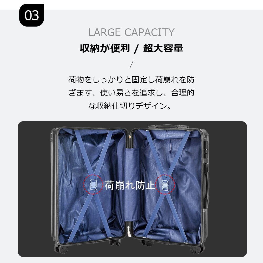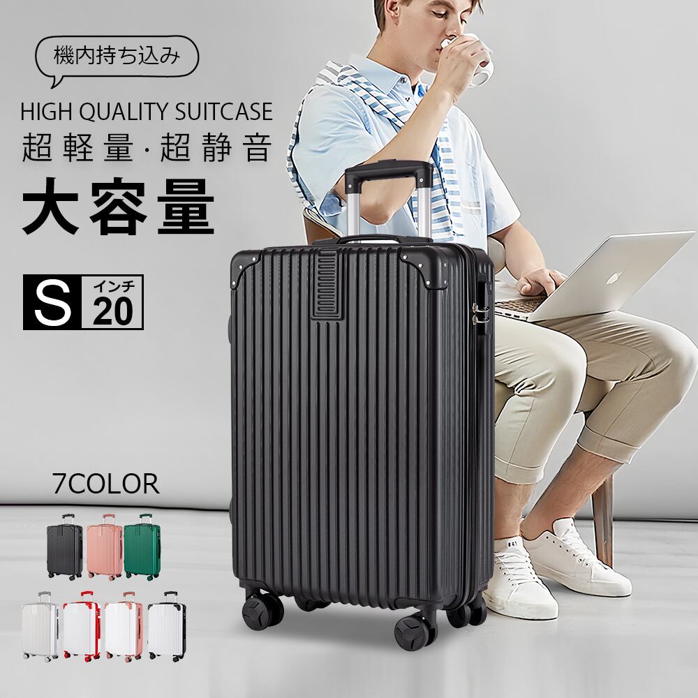 素材/材質ABS+PC高品質ボディサイズ20インチ 36*21*58cm色銀色、グリーン、ピンク、ブラック、ホワイト×ブラック、ホワイト×ピンク、ホワイト×レッド 容量20インチ 約40L製品特徴【360°/ 静音キャスター】新たに採用されたWキャスターで安定走行が実現しました。海外に多い石畳やレンガ道でも滑らかに動かすことができます。4つの車輪に荷重が分散されるため耐久性にもすぐれています。【超軽量・大容量】女性の方でもラクラク持ち上げることができる驚きの軽さ&たっぷり入る使いやすい内装設計。【合理的な仕切りデザイン】高品質のポリエステル生地で、柔らかいかつ快適です。密閉されたU字型コンパートメントのおかげで、荷物を入れるとばらばらになりません。メッシュ状のポケットにより、入れ物は一目でわかります。X型ベルトが搭載され、荷物崩れを防着ます。出力抜群で、たくさんの小物を入れることはできます。