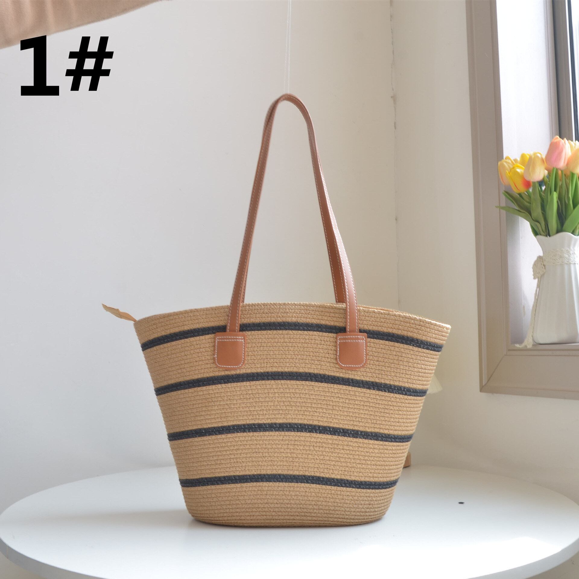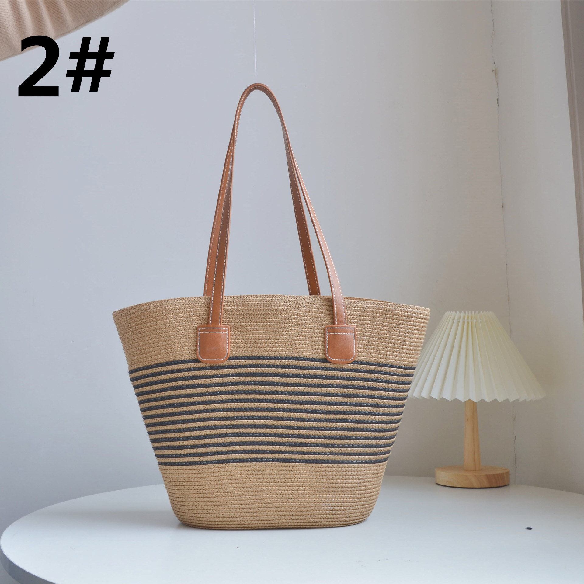ボーダー柄 草編み トートバッグ 手提げバッグ 上品 レディース ファッション シンプル