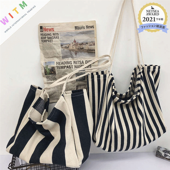 ストライプ柄 トートバッグ 肩掛けバッグ 手提げバッグ 大容量 男女兼用 通学 通勤