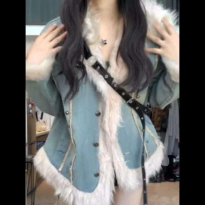 トップス アウター ジャケット デニム Gジャン ジャンパー フェイクファー 起毛 レディース